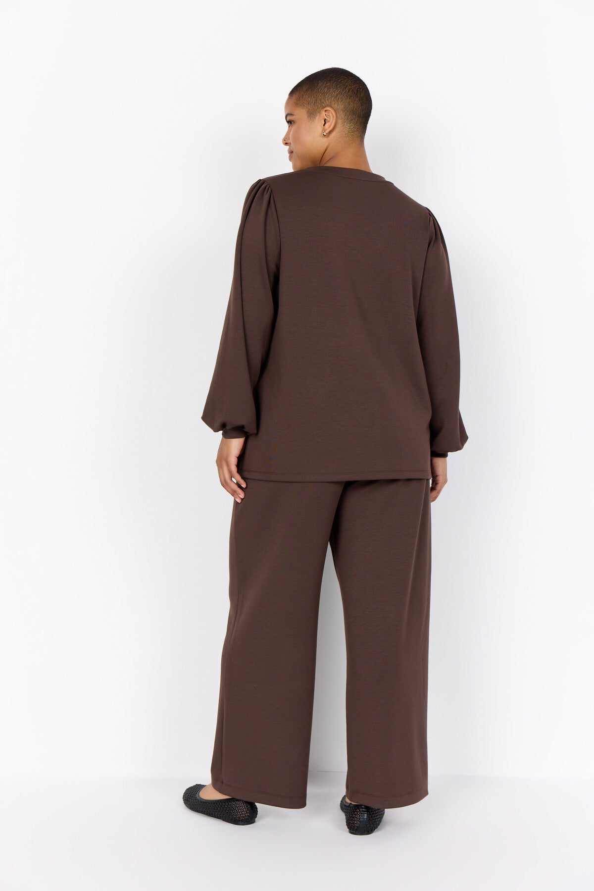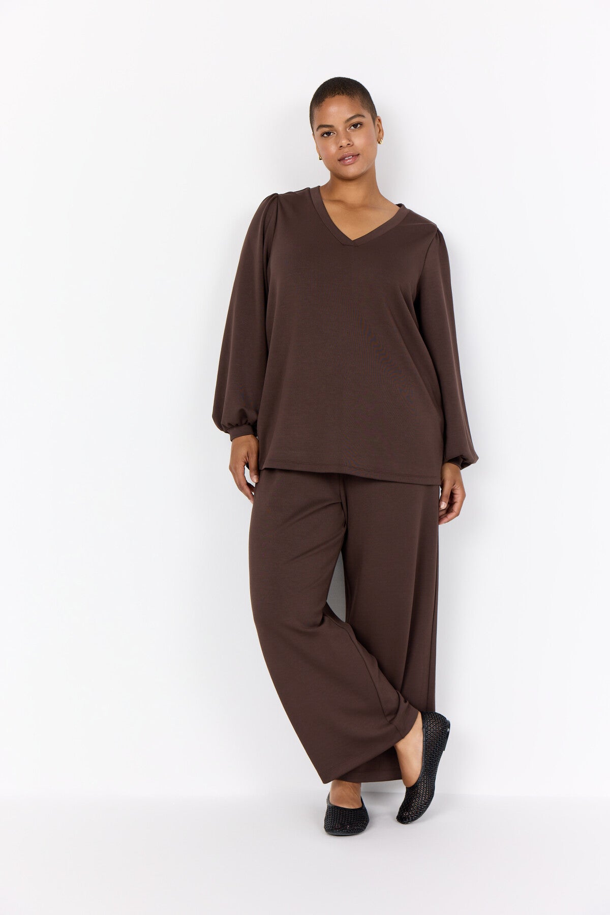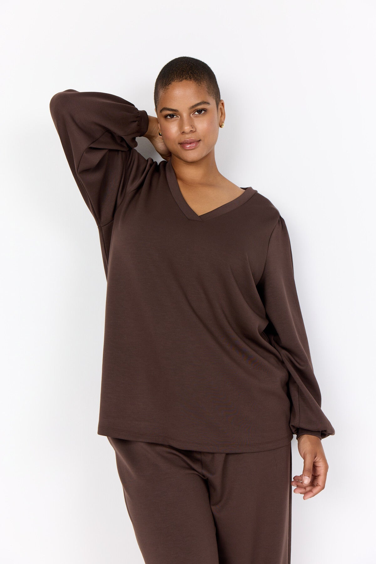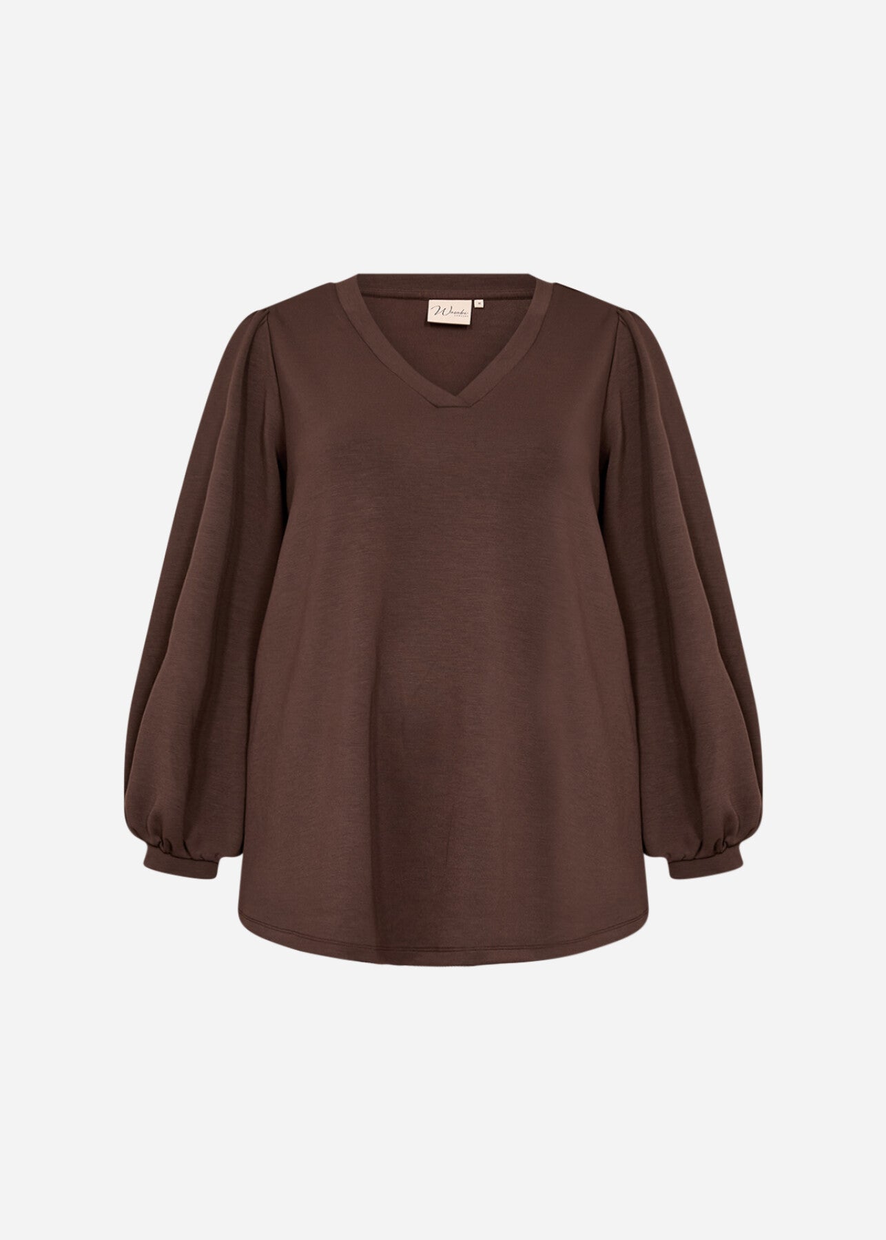 WA-SABINA 58 is a Blouse crafted from 48% Modal, 48% Polyester, and 4% Elastane. It features a V-neckline with gathered long sleeves and elasticated cuffs. Pair it with tailored trousers or a sleek skirt for a smart look.