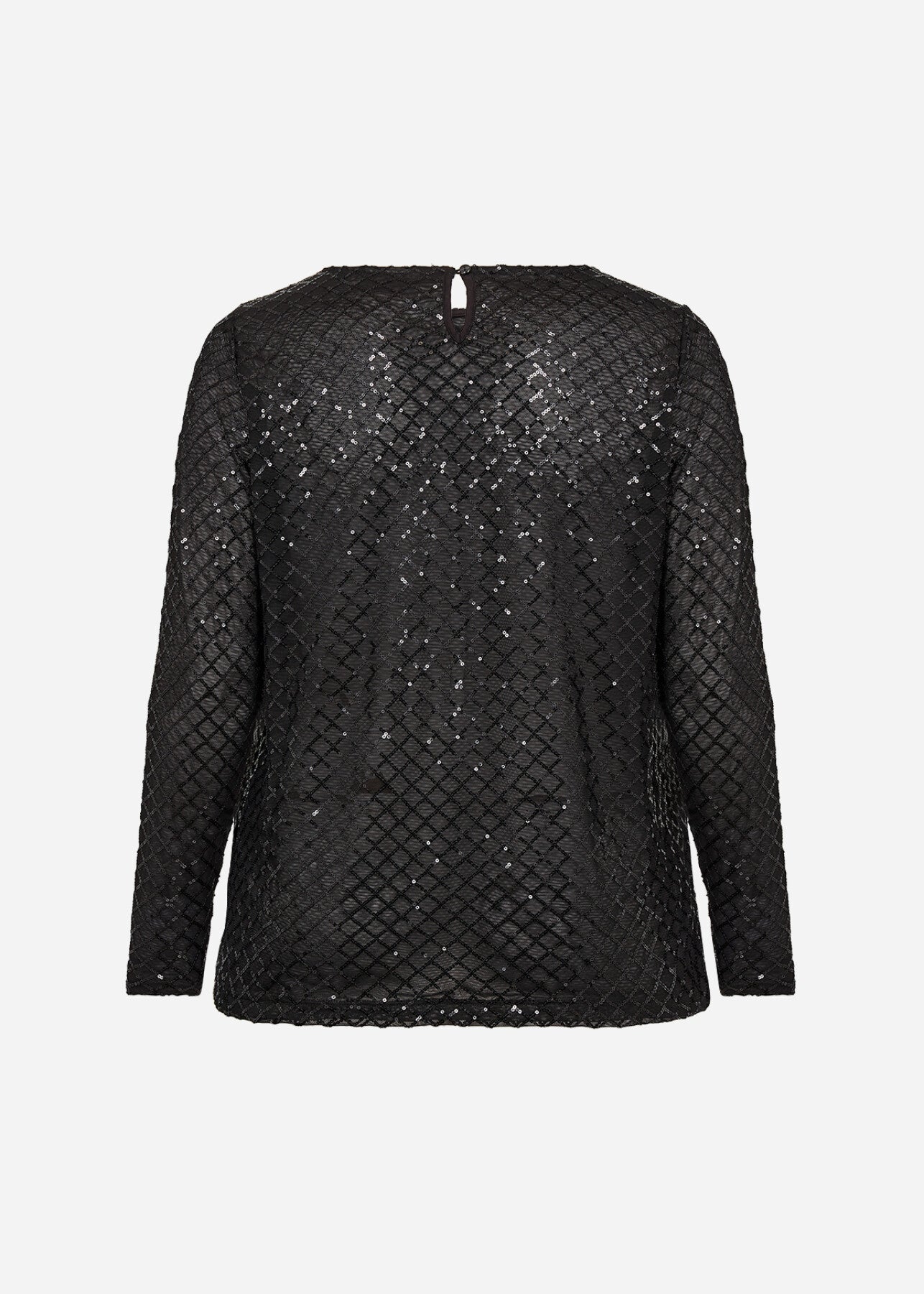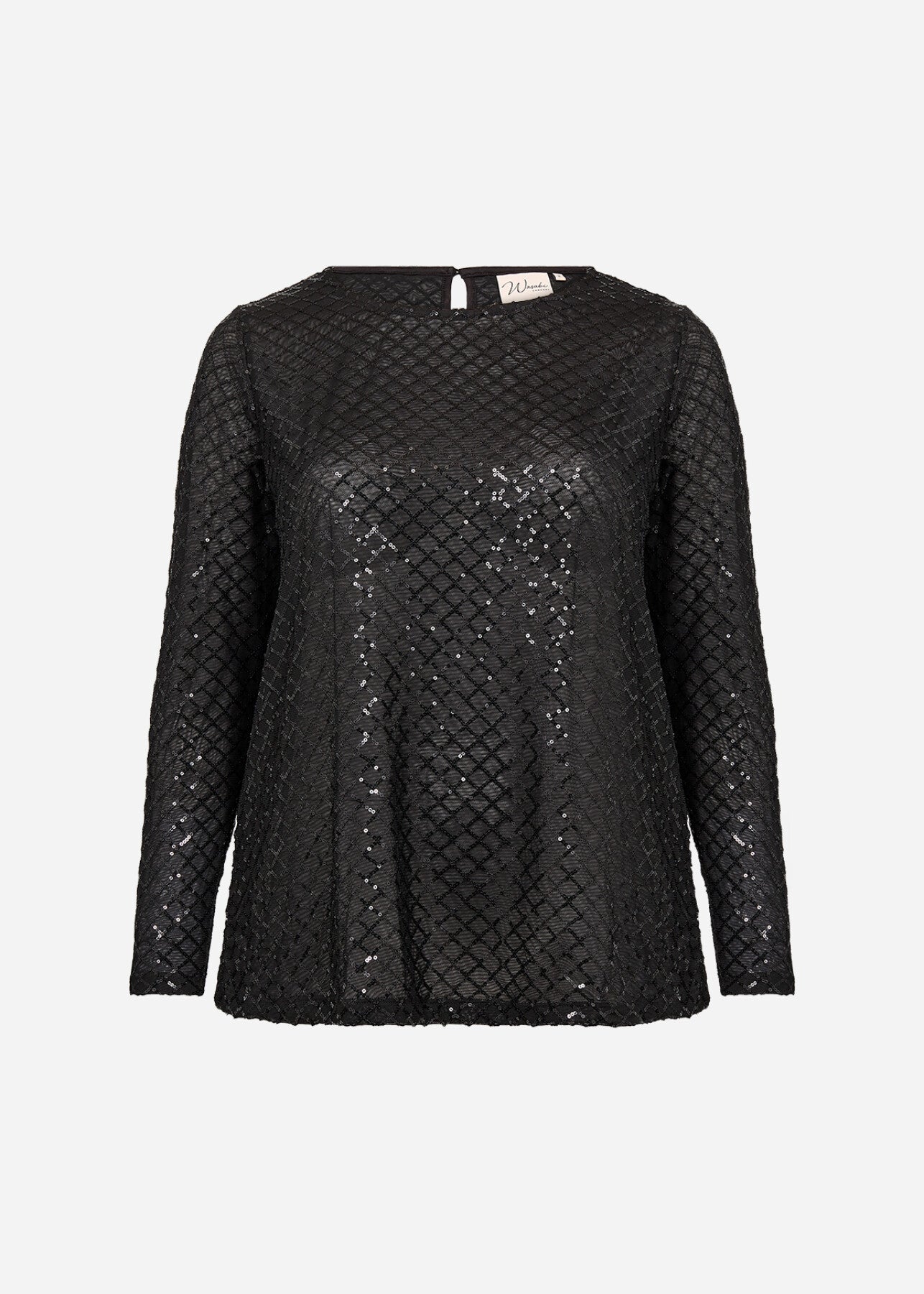 WA-SHAO 1 is a Blouse, crafted from 95% Polyester and 5% Elastane. It features a round neckline, long sleeves, and an elegant sequin pattern. Pair it with tailored trousers or a sleek skirt for a unique and stylish look.