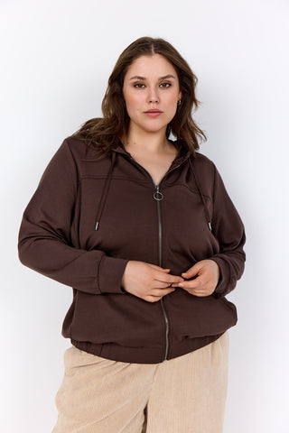 WA-SABINA 60 cardigan is crafted from 48% Modal, 48% Polyester, 4% Elastane. It features a zip-up front, drawstring hood with ruffle details, and ribbed cuffs. Pair it with jeans for a relaxed look or layer over a dress for added warmth.