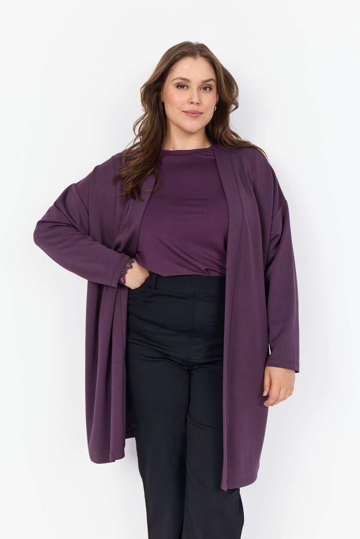 WA-SABINA 23 Cardigan is crafted from a blend of 48% Modal, 48% Polyester, and 4% Elastane. This cardigan features an open front design with a shawl collar. Pair it with tailored trousers for a cool look or layer over a dress for a stylish finish.