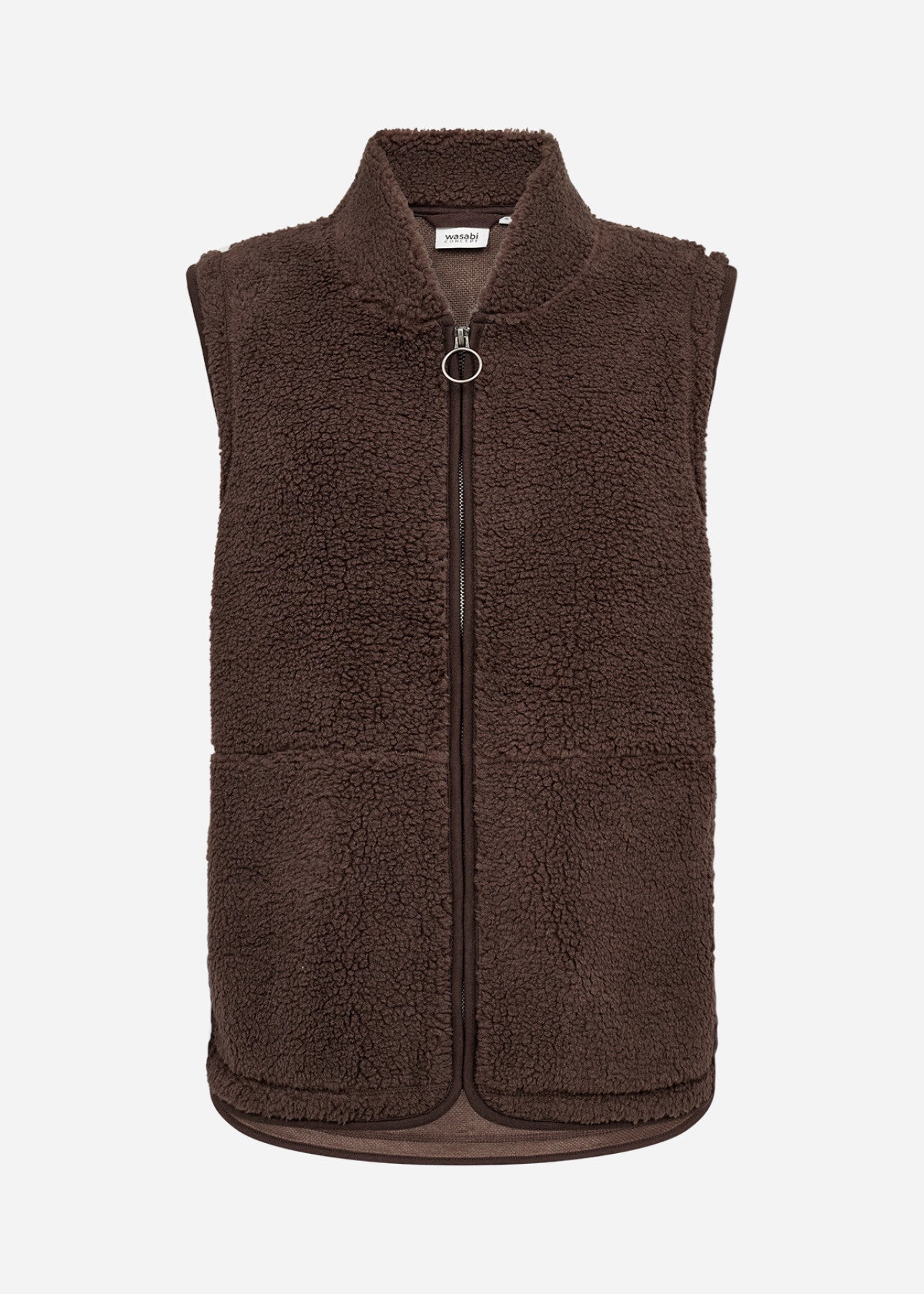 WA-NETTIE 1 is a waistcoat crafted from 100% recycled polyester. This waistcoat features a high collar, zip closure, and a soft texture. Pair it with a simple top and jeans for a comfortable, stylish look.