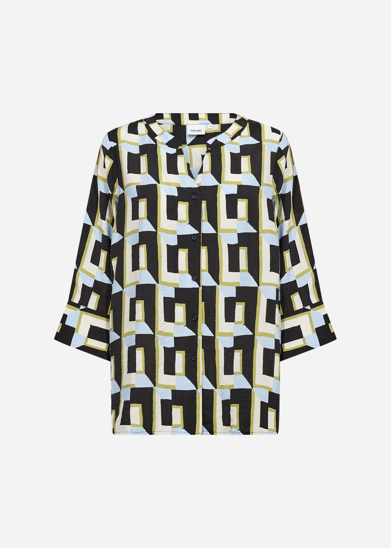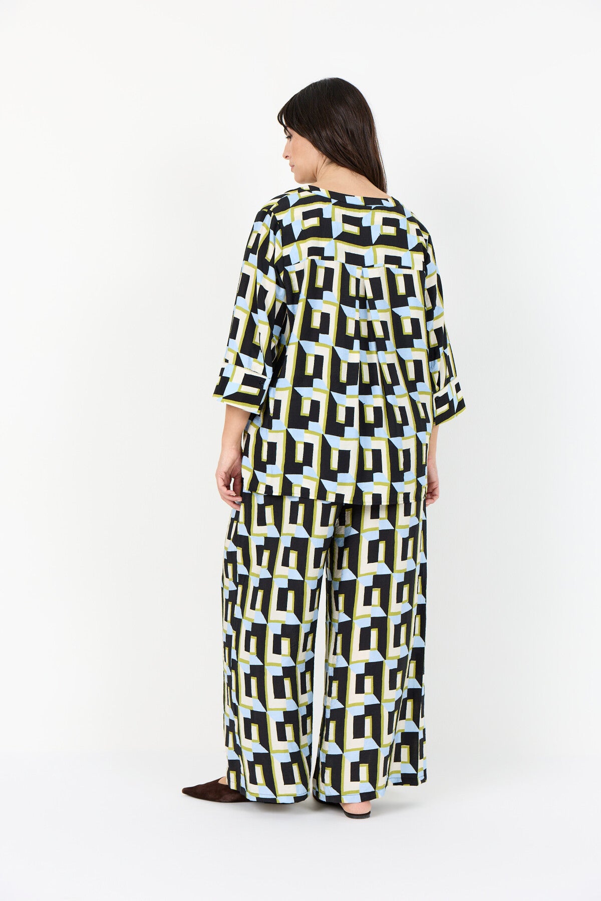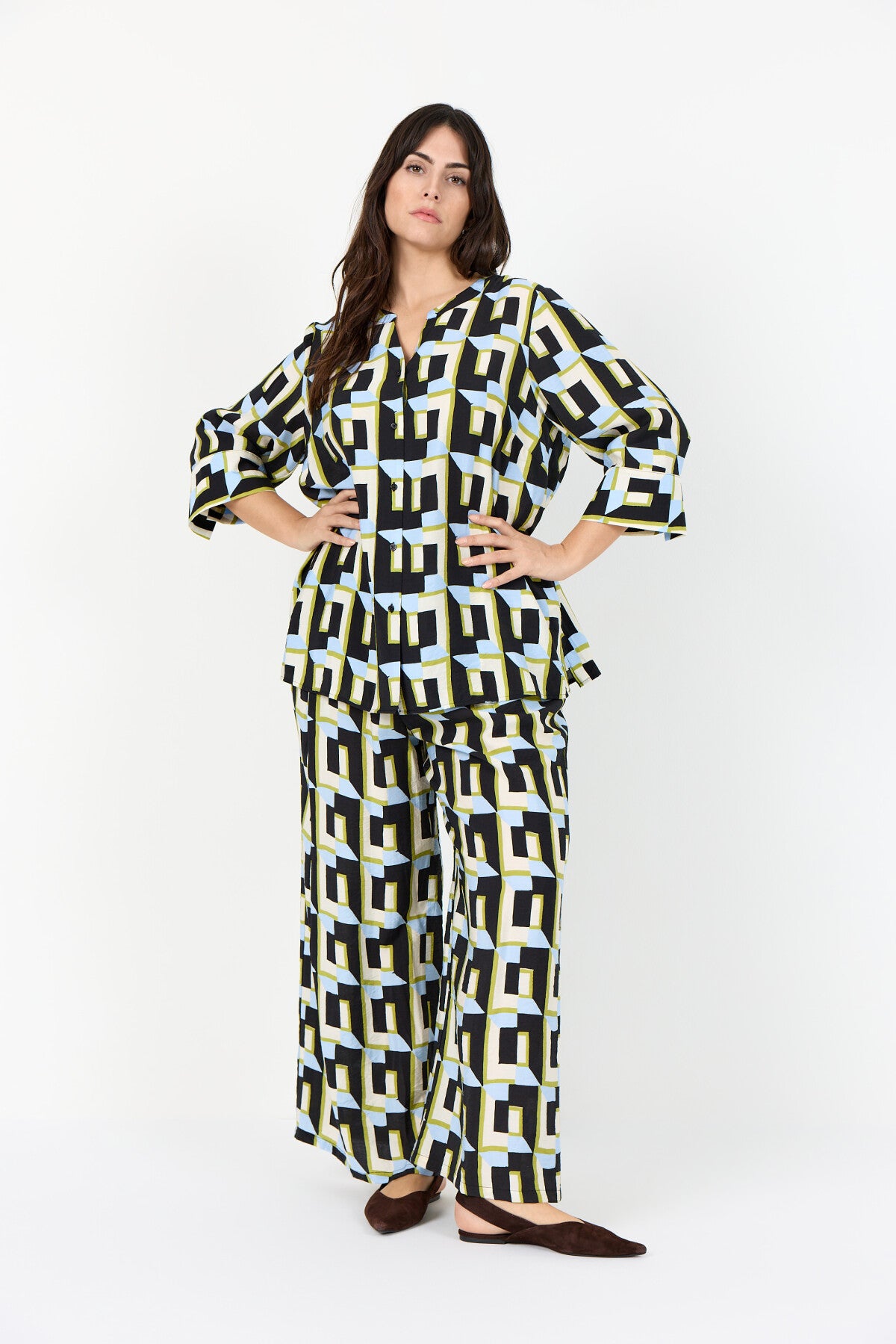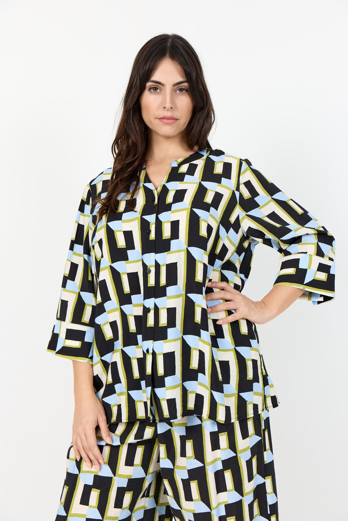 WA-SARENA 1 is a unique Blouse crafted from 82% LENZING™ ECOVERO™ Viscose and 18% Polyamide. This blouse features a geometric print, a classic collar, and button-down front with three-quarter sleeves. Pair it with tailored trousers for a sophisticated look or jeans for a casual vibe.