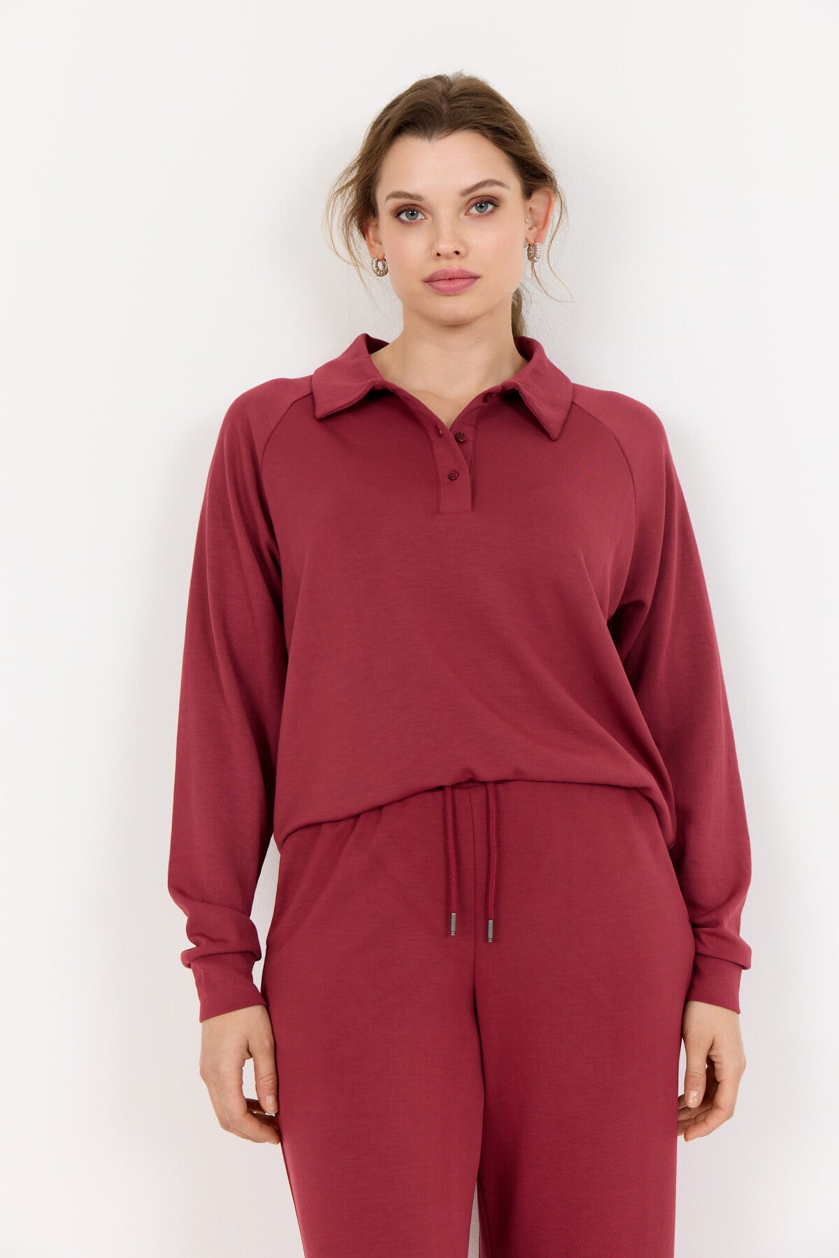WA-SABINA 73 is a unique Sweatshirt crafted from a blend of 48% Modal, 48% Polyester, and 4% Elastane. This sweatshirt features a classic polo collar, a button placket, a relaxed fit and ribbed cuffs for added comfort. Pair it with your favorite jeans for a clean look, or our matching sweatpants for a comfortable yet stylish look.