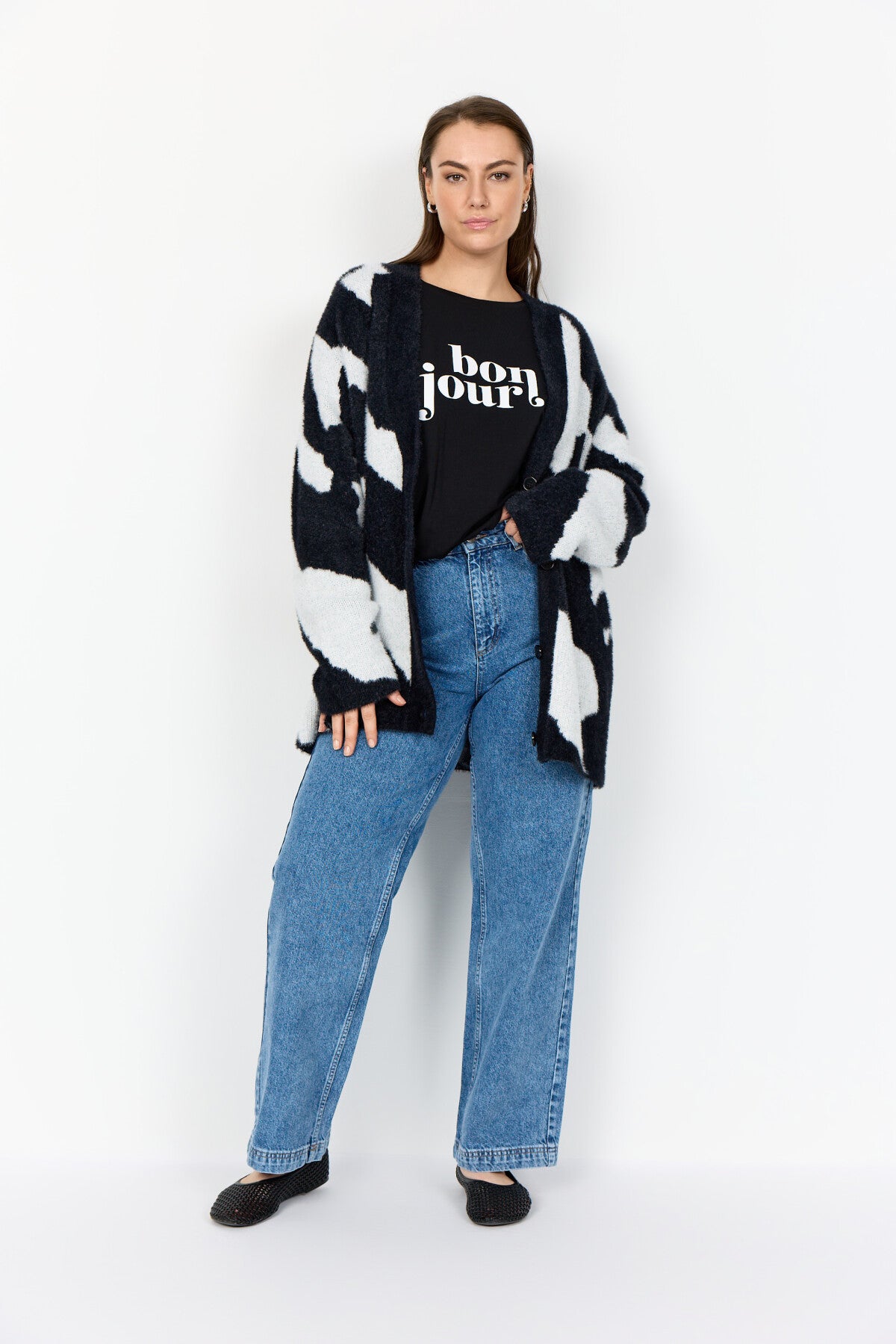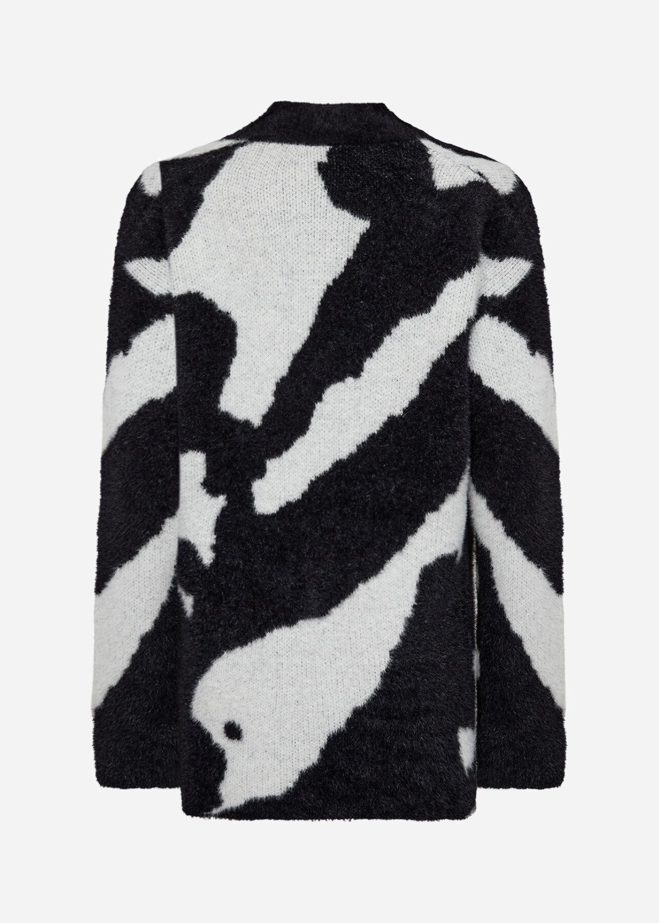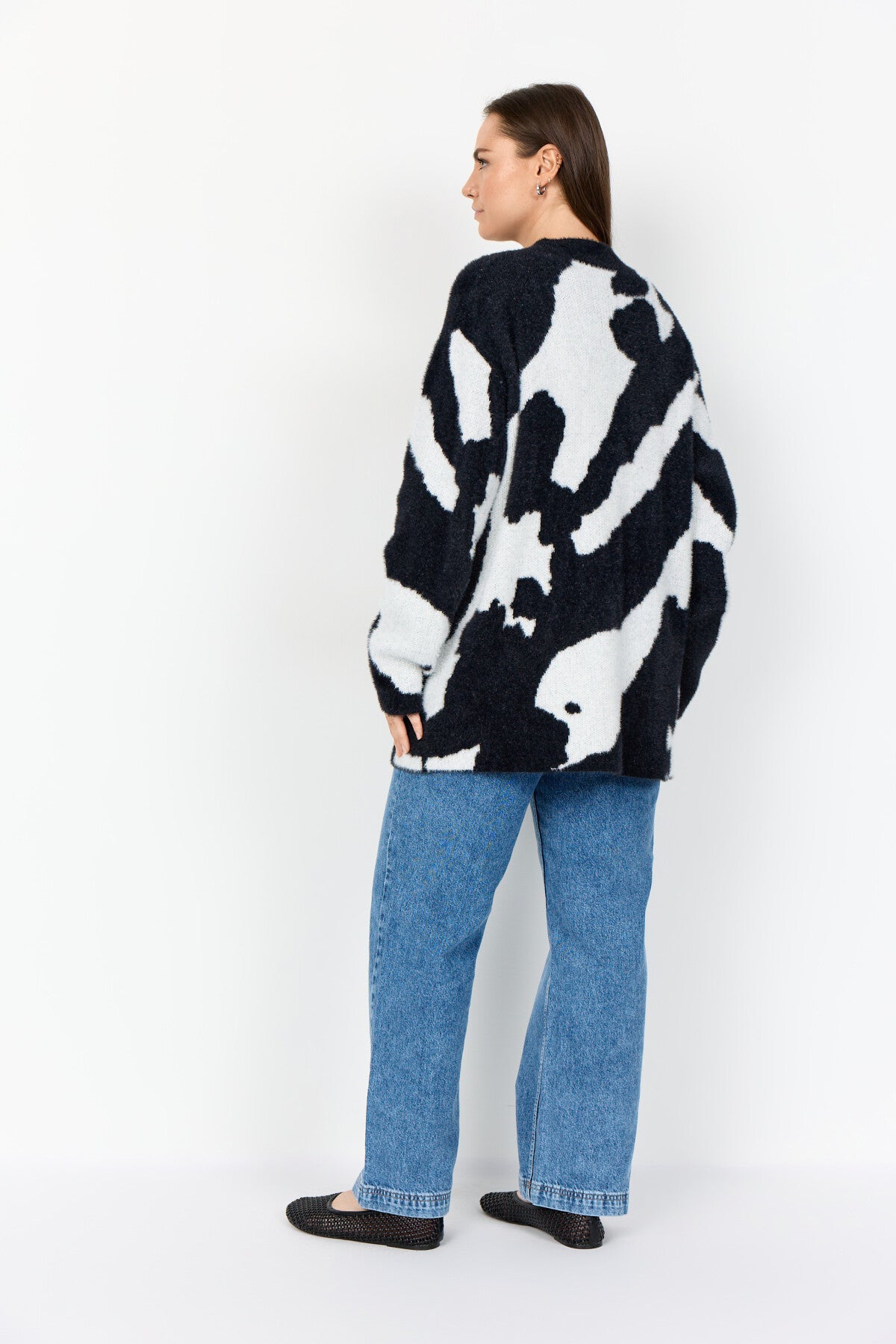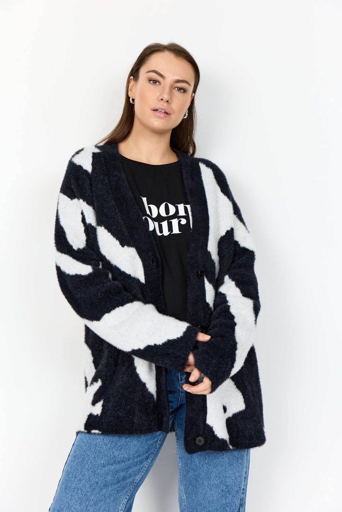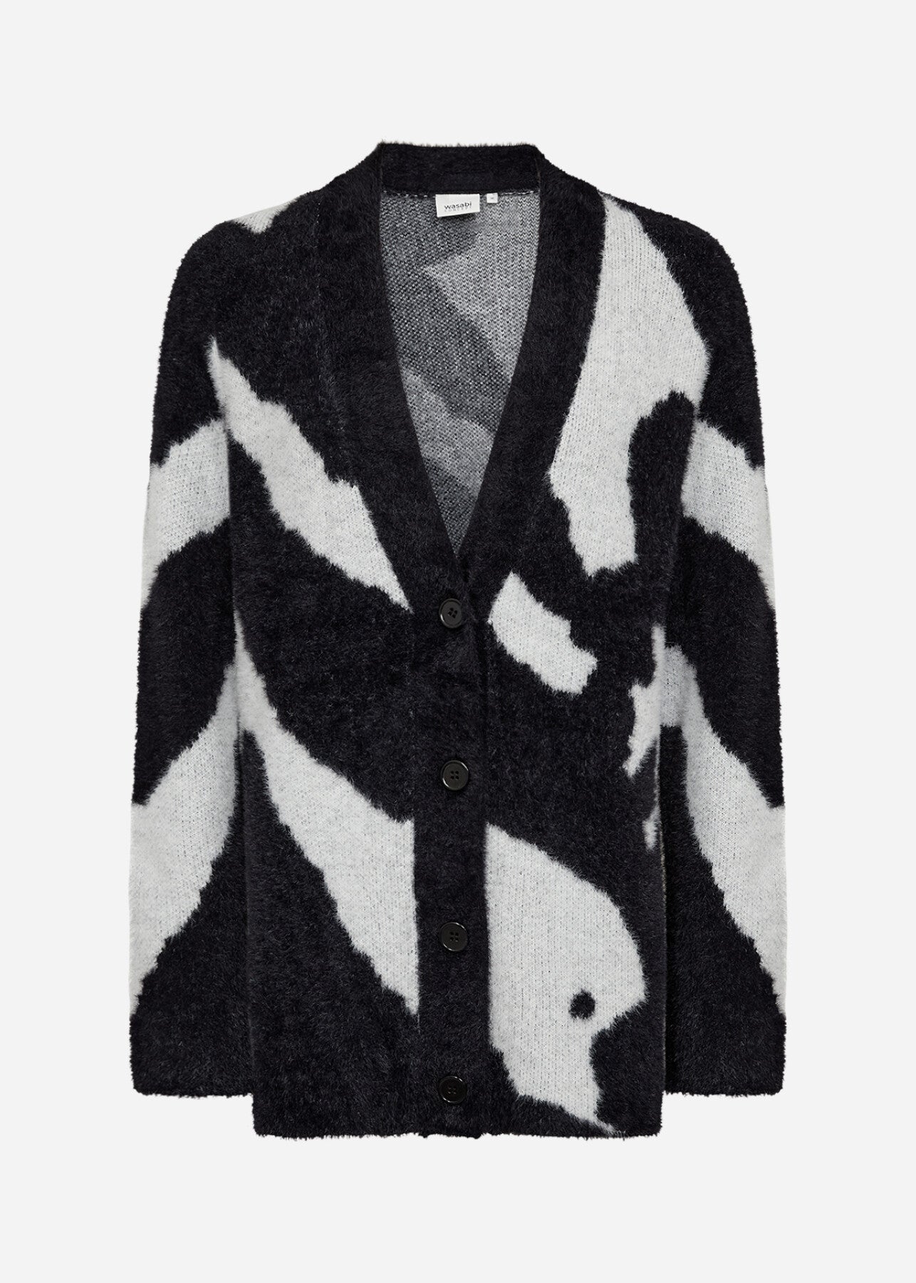 WA-CHERRY 3 is a comfy and stylish Cardigan crafted from 60% Nylon, 22% Acrylic, and 18% Cotton. This elegant piece features a deep V-neck, black buttons, a loose fit and a striking abstract pattern for added texture. Pair it with jeans or tailored trousers for a stylish look.