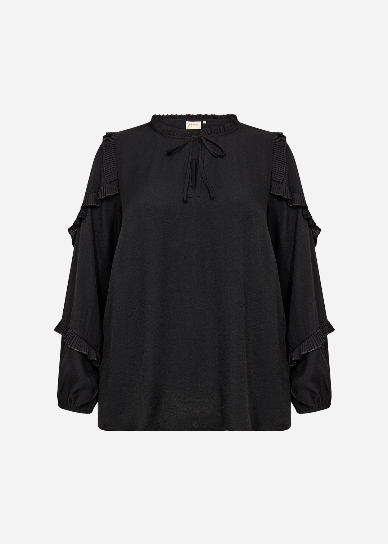 WA-SAFIA 1 is a Blouse crafted from 85% LENZING™ ECOVERO™ Viscose, 15% Nylon. This elegant blouse includes pleated ruffle details along the sleeves, a tie at the neck, a discreet collar and a relaxed fit. Pair it with tailored trousers for a sophisticated look or jeans for a cool, casual style.