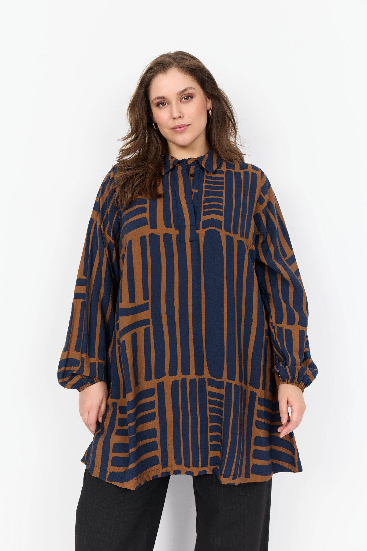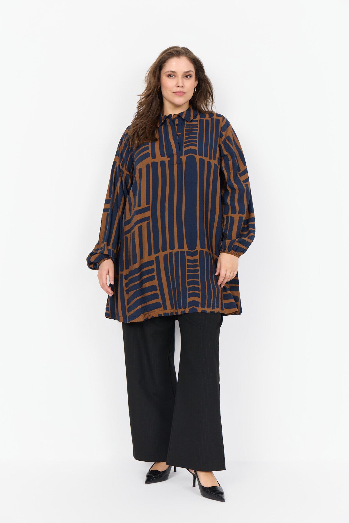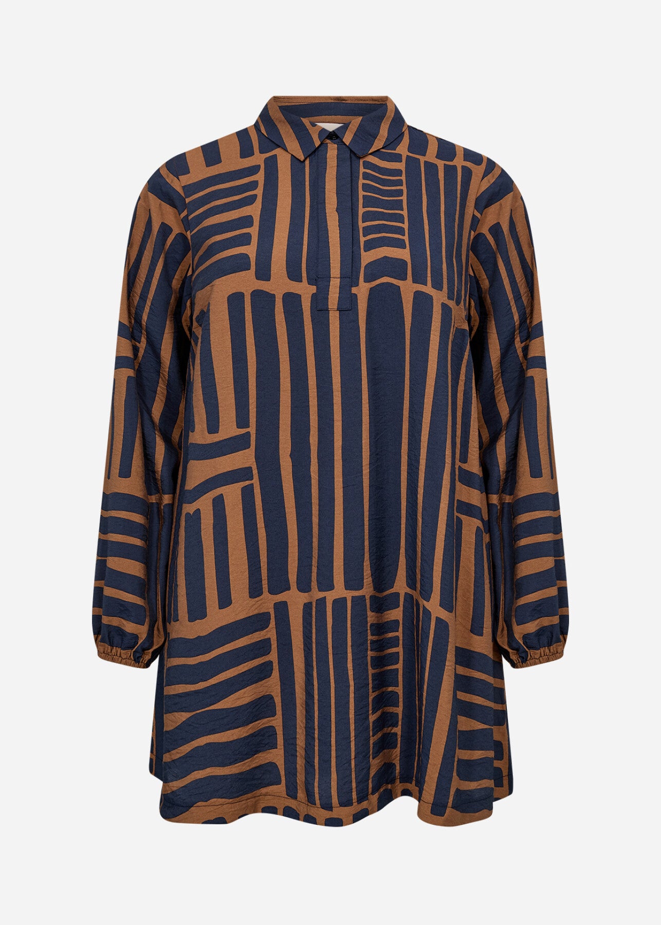 WA-SKY 2 is a Tunic, crafted from 82% LENZING™ ECOVERO™ Viscose, 18% Polyamide. It features an elegant collar, button details and a unique geometric print. Style it with leggings or slim-fit pants for a cool and unique look.