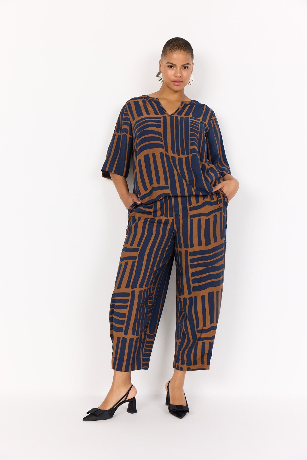 WA-SKY 3 Pants are made from 82% LENZING™ ECOVERO™ Viscose, 18% Polyamide. These pants feature an elastic waistband, a striking geometric print, and a comfortable cropped length. Pair them with a fitted top and flats for an elegant look.