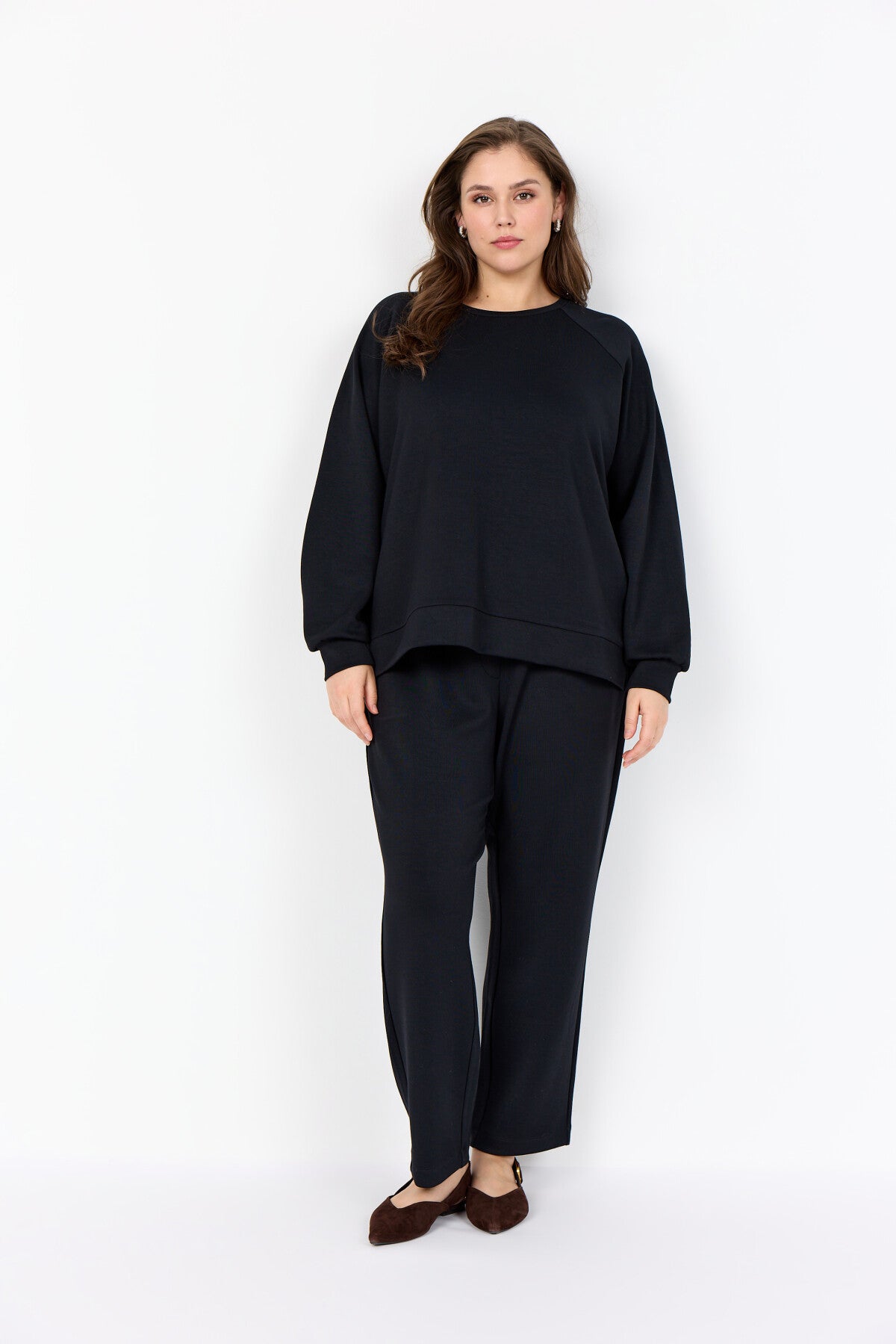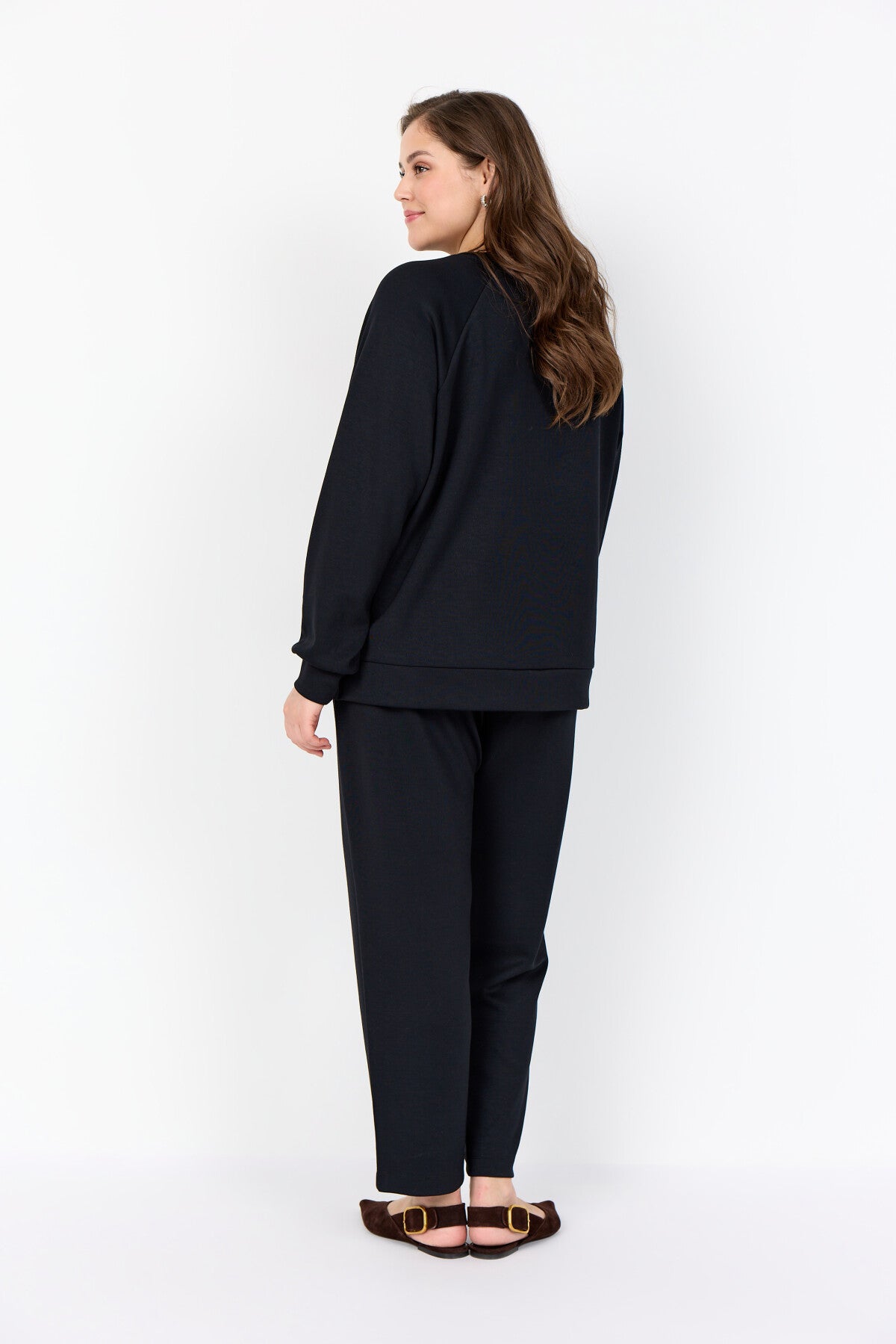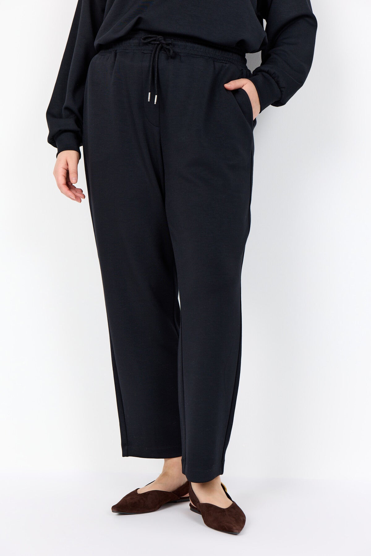WA-SABINA 31 are comfortable sweatpants made from a blend of 48% Modal, 48% Polyester, and 4% Elastane. They feature an elastic waistband with a drawstring and side pockets. Pair them with a casual t-shirt and sneakers for a relaxed look.