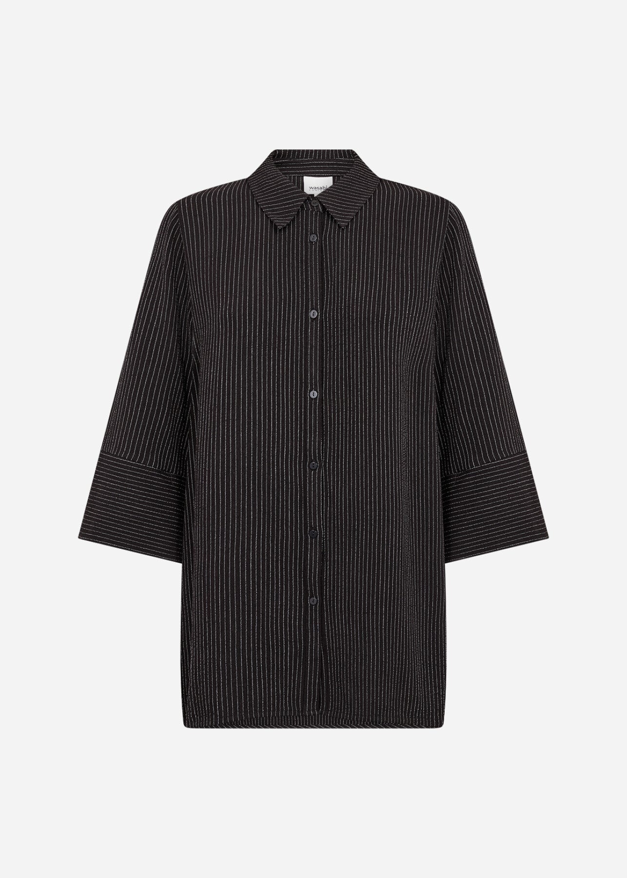 WA-SANILLA 4 is a crisp Shirt crafted from a blend of 70% LENZING™ ECOVERO™ Viscose and 30% Linen. The shirt features a classic collar, button closure, 3/4 sleeves, and a subtle striped pattern that adds texture. Pair it with tailored trousers or denim for a smart and elegant look.