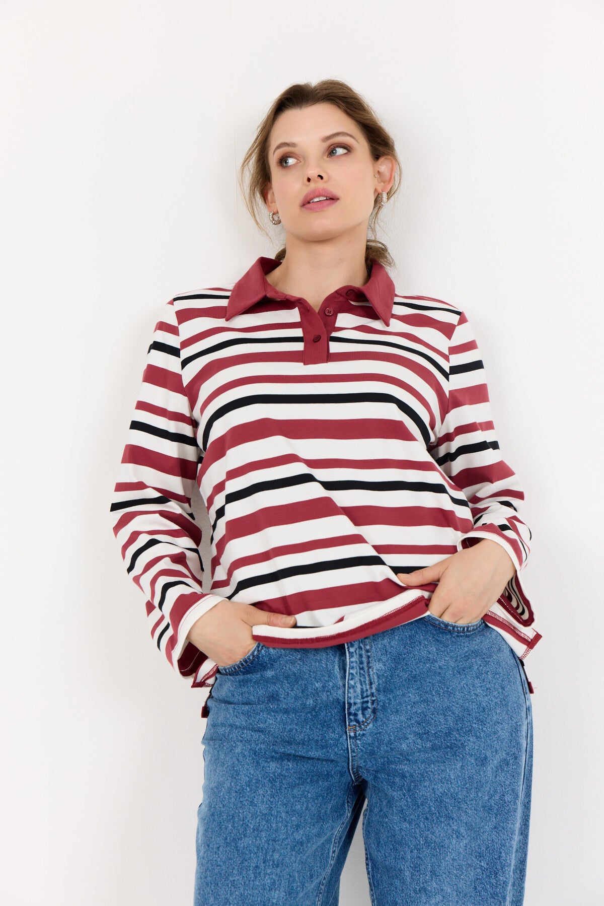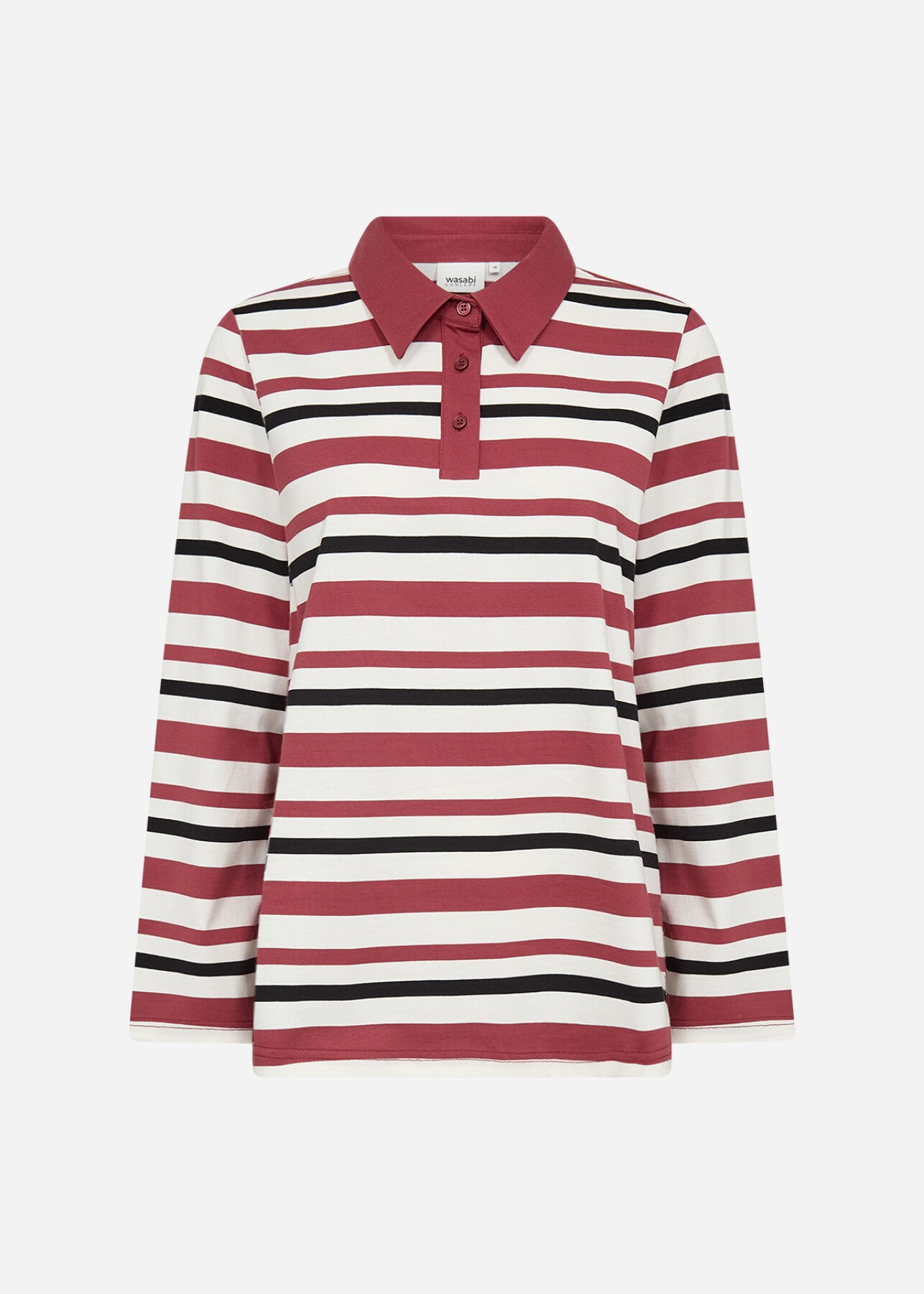 WA-CHRISTEL 2 is a cool blouse crafted from 100% Organic cotton. It features a classic collar, three-button placket, and a striking striped pattern. Pair it with jeans or shorts for a cool, casual look.
