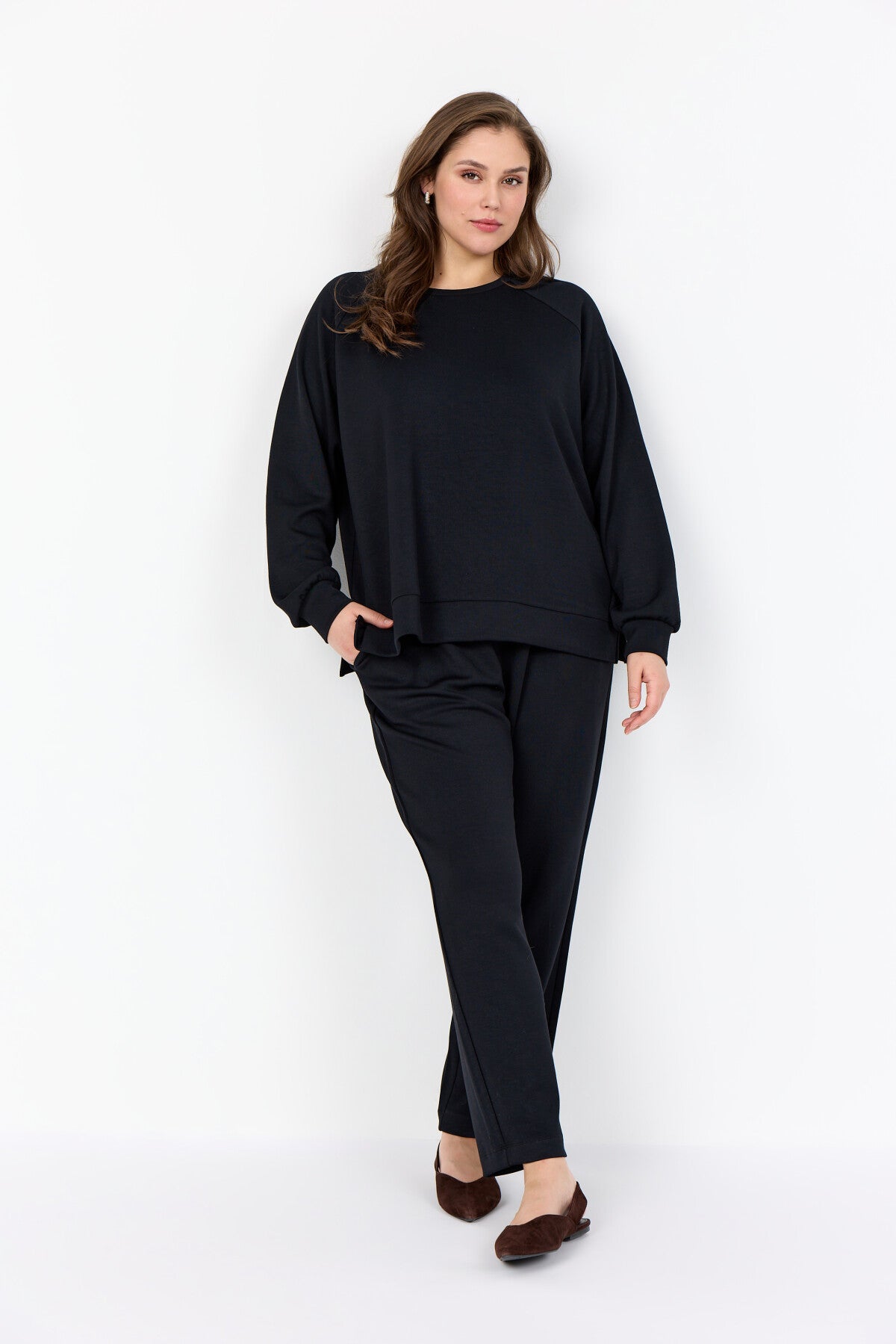 Bella is 176 cm tall and wears a size 46 - 48