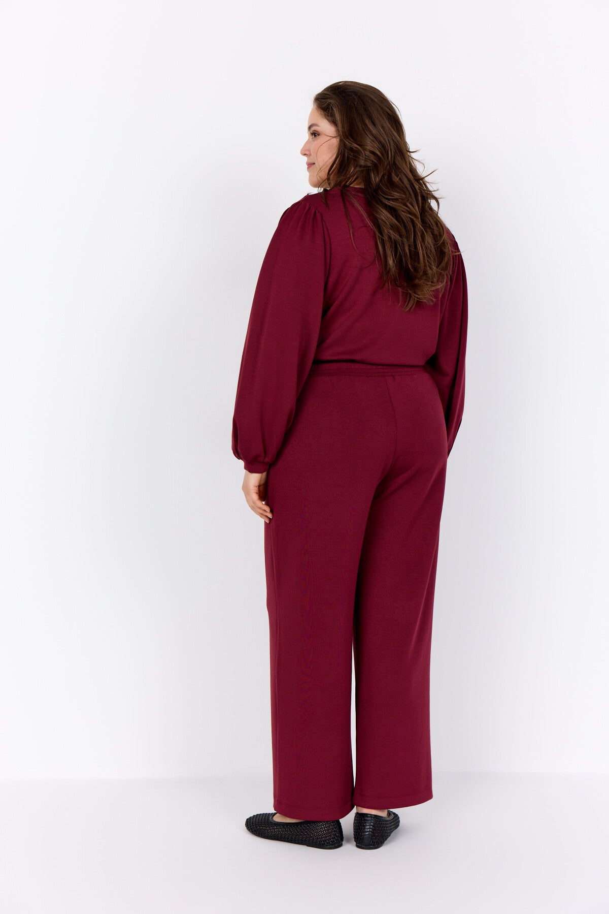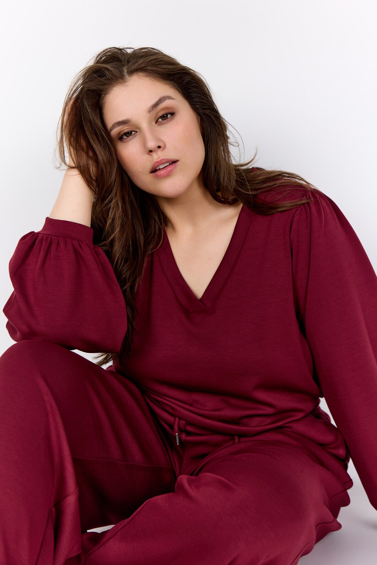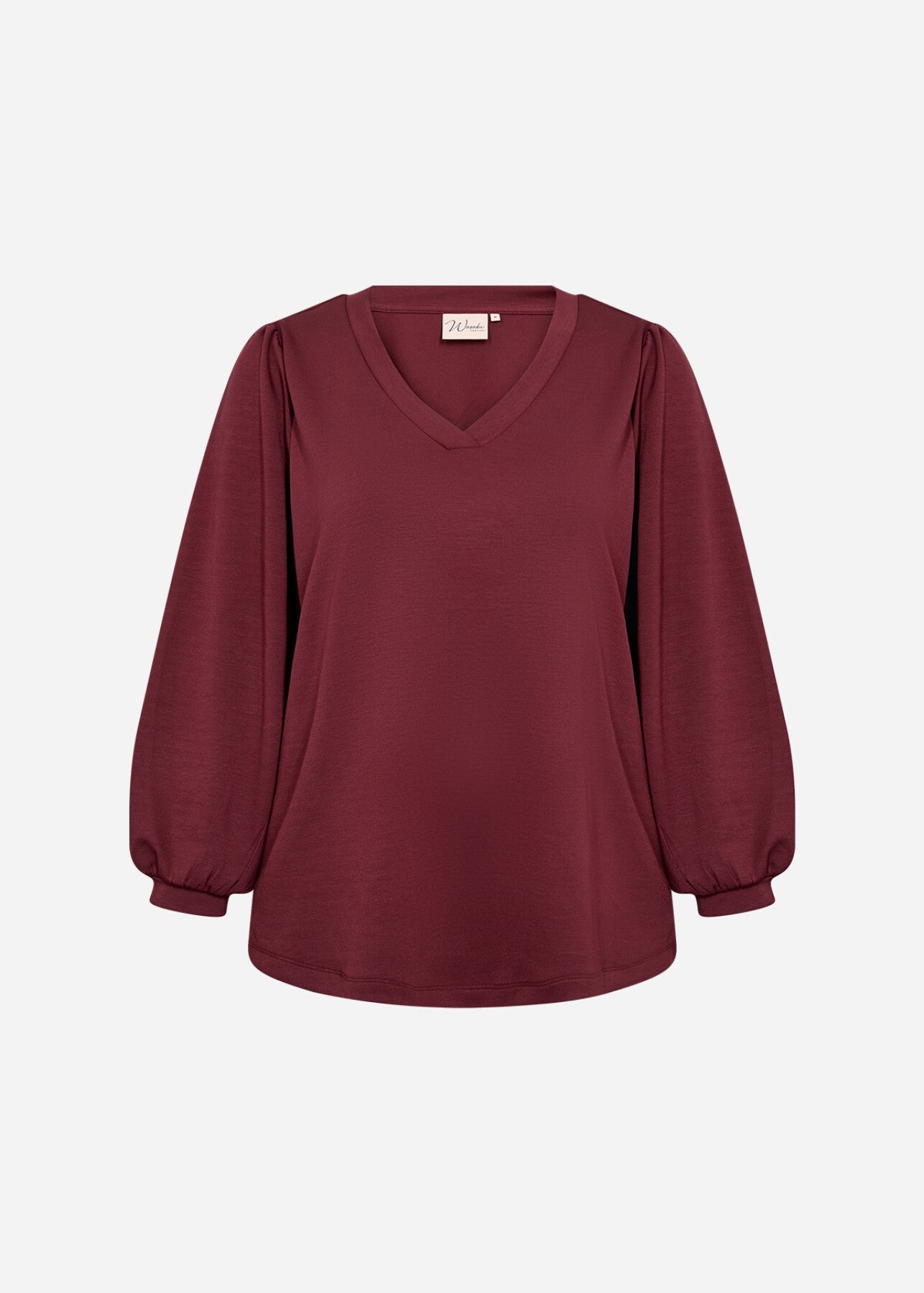 WA-SABINA 58 is a Blouse crafted from 48% Modal, 48% Polyester, and 4% Elastane. It features a V-neckline with gathered long sleeves and elasticated cuffs. Pair it with tailored trousers or a sleek skirt for a smart look.