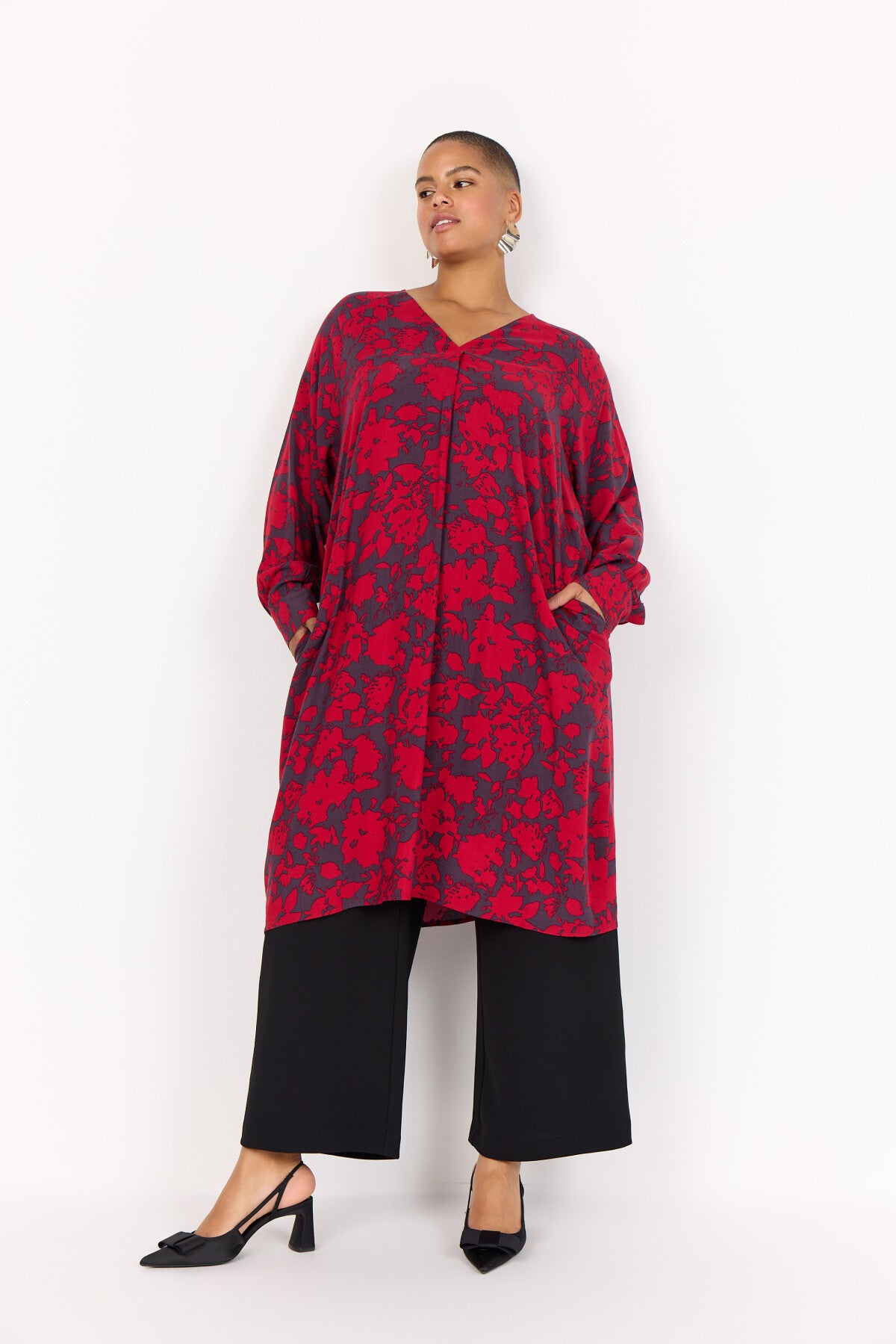 WA-SAPHINA 3 Dress is crafted from 100% LENZING™ ECOVERO™ Viscose. It features a V-neckline, button details, long sleeves, and an elegant floral print. Pair it with knee-high boots or simple flats for a unique look.