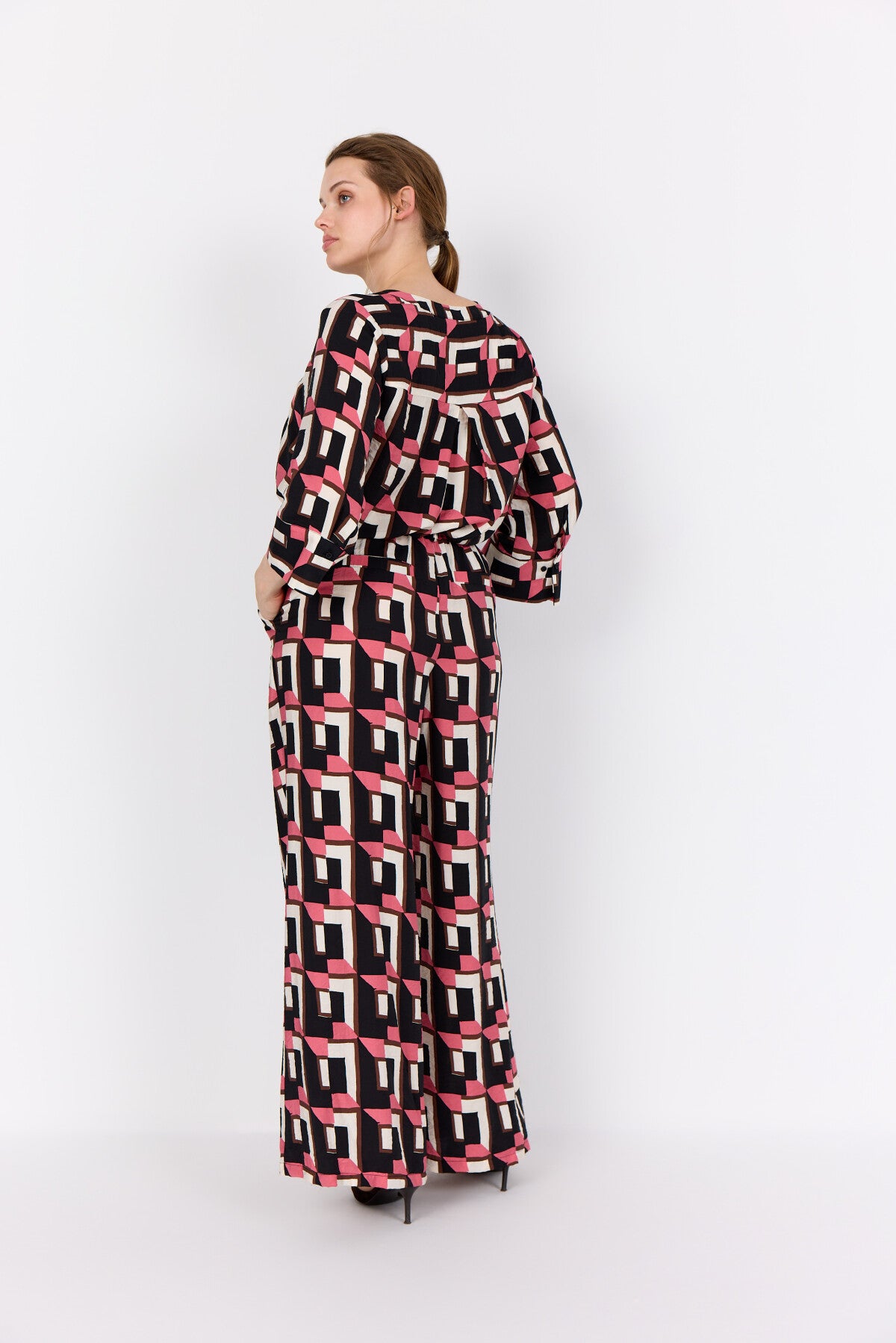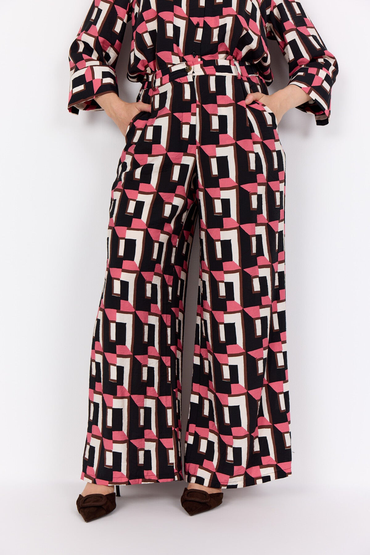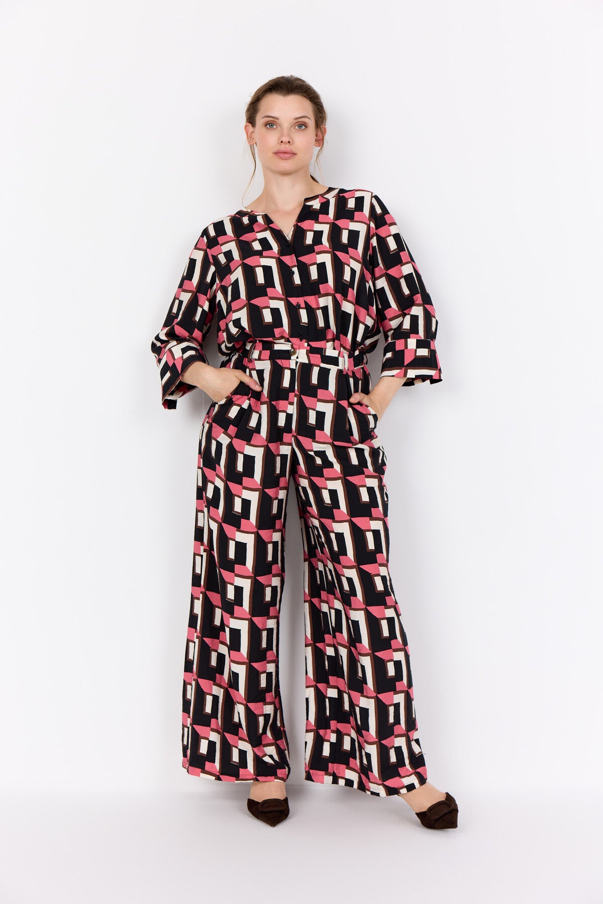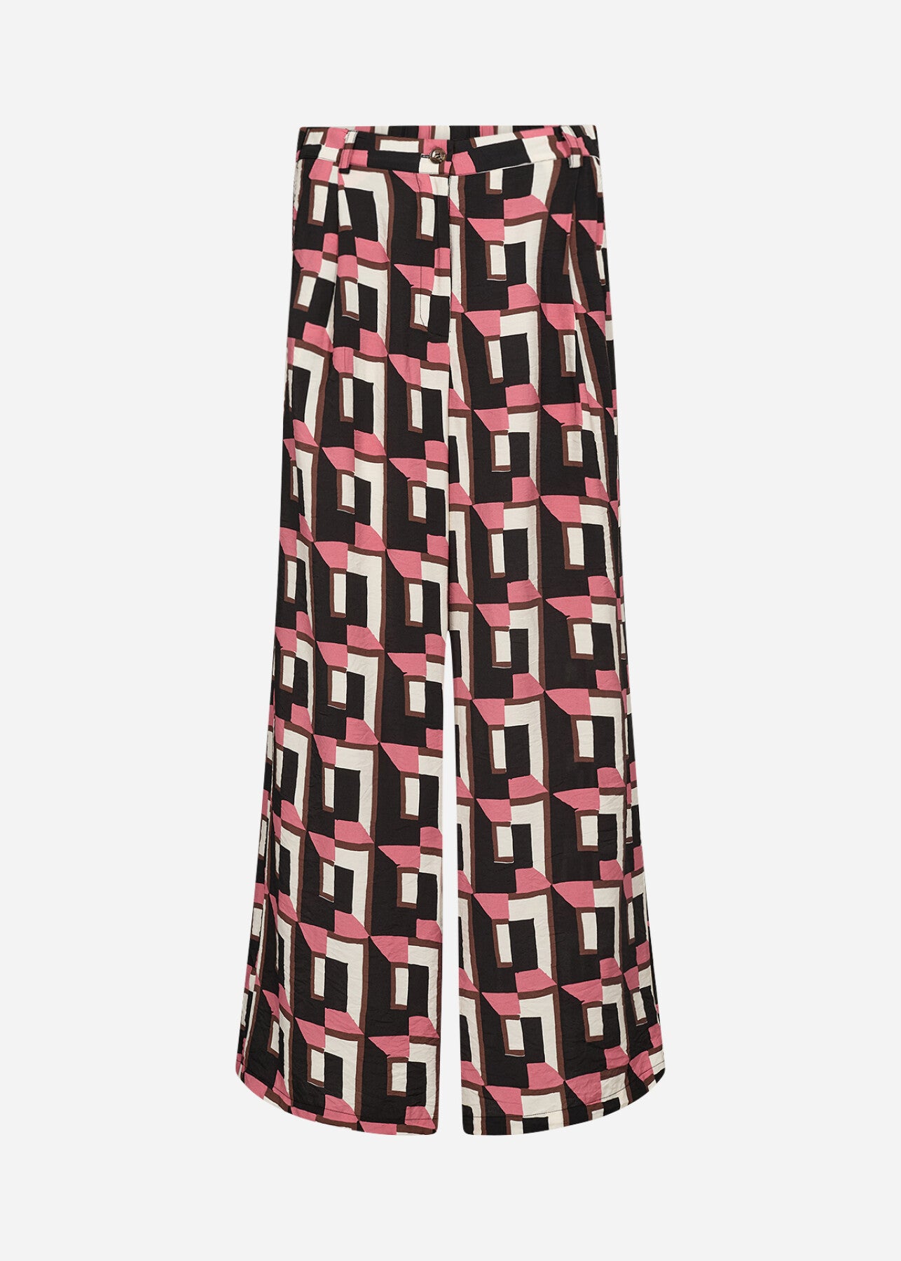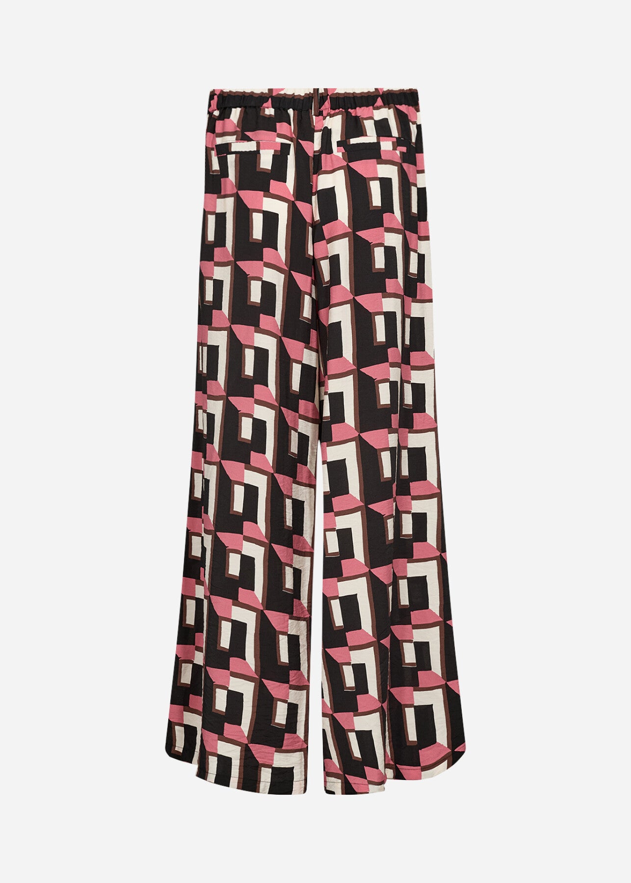 WA-SARENA 2 are cool Pants crafted with 82% LENZING™ ECOVERO™ Viscose and 18% Polyamide. These elegant pants feature a mid-rise waist, wide-leg cut, and a striking geometric print. Pair them with a simple blouse or a fitted top for an eye-catching look.