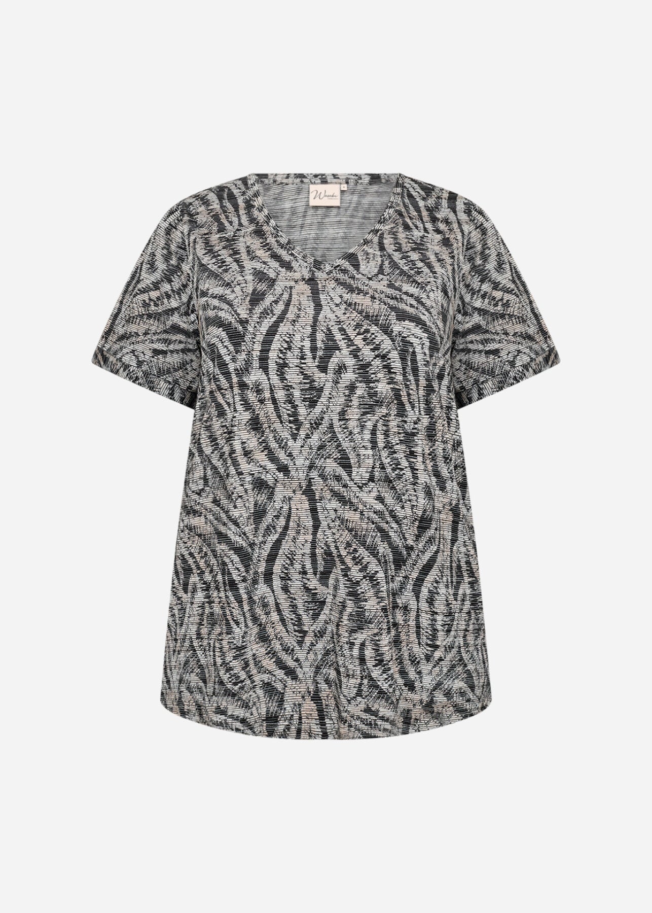 WA-SARINA 20 T-shirt is made from 52% Viscose, 44% Polyester, 4% Elastane. This T-shirt features a V-neckline and short sleeves with an abstract print throughout. Pair it with your favorite jeans or a skirt for a relaxed and comfortable look.