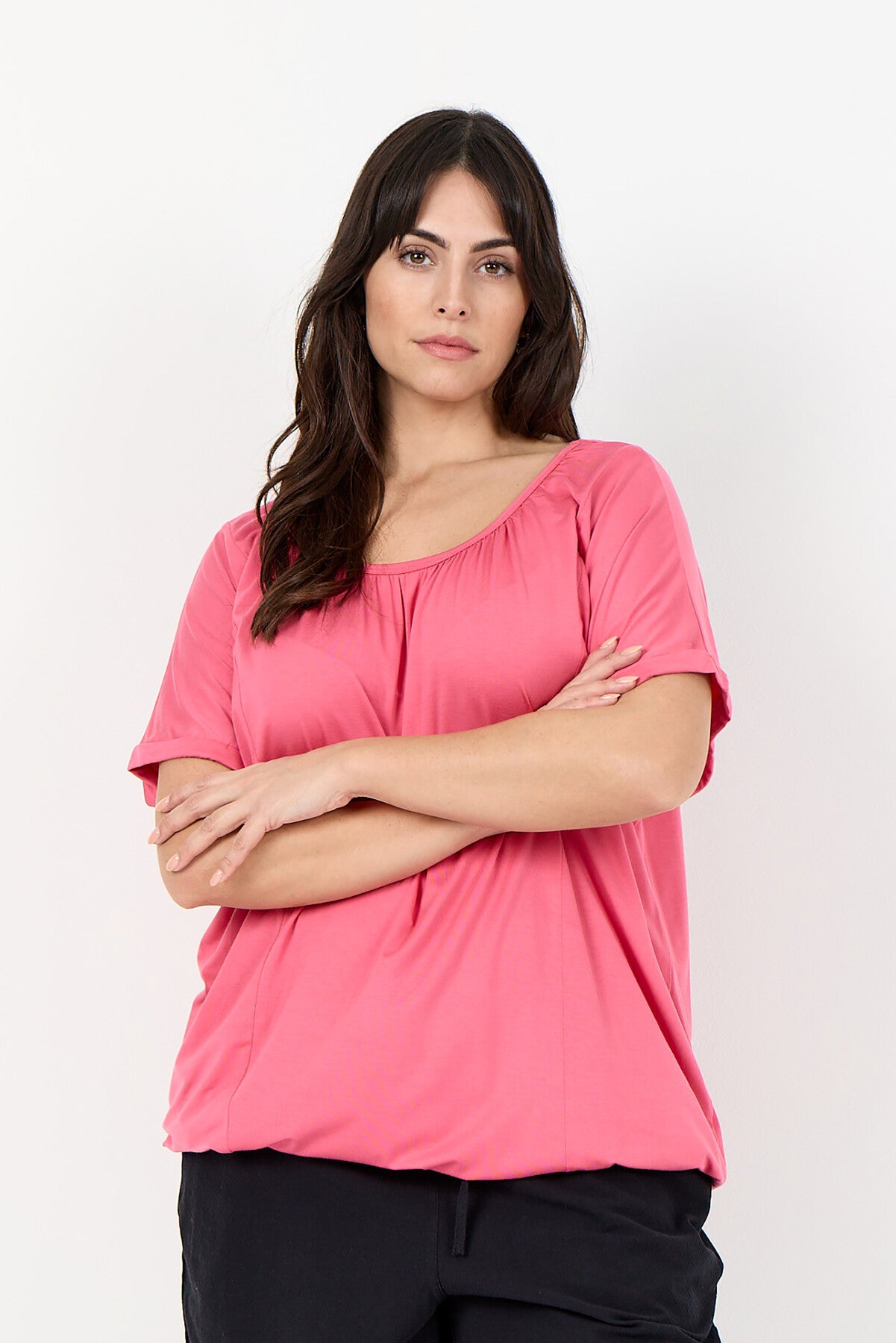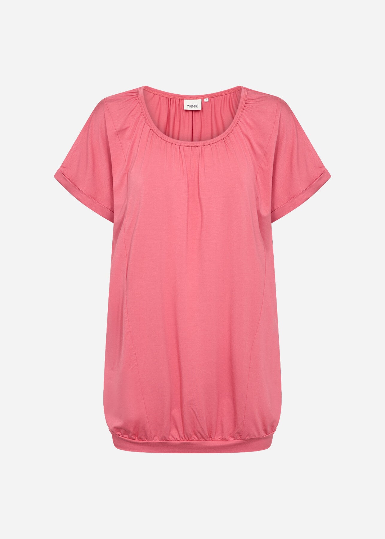 WA-STELLA 4 is a feminine T-shirt crafted from 93% Lyocell, 7% Elastane. The elegant design features a gathered round neckline with short sleeves and a relaxed fit. It pairs effortlessly with casual jeans or a sleek skirt for versatile styling.